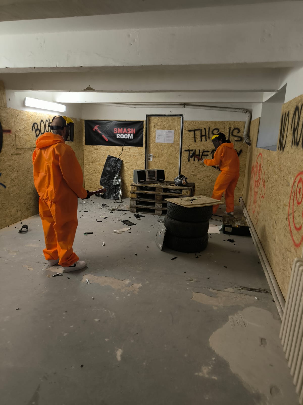 Parádní zážitek. Safe space, kde člověk opravdu může pustit kontrolu. Oceňuju výběr zbraní a možnost nejen rozbíjet, ale taky prostě jen mlátit (pneumatiky, palety, dřevotříska, stará myčka). Velké plus je, že člověk je v místnosti úplně sám, takže má soukromí.