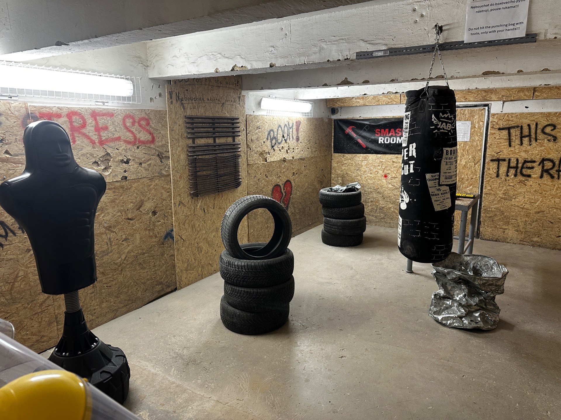 Parádní zážitek. Safe space, kde člověk opravdu může pustit kontrolu. Oceňuju výběr zbraní a možnost nejen rozbíjet, ale taky prostě jen mlátit (pneumatiky, palety, dřevotříska). Velké plus je, že člověk je v místnosti úplně sám, takže má soukromí.